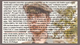 Os acontecimentos a seguir foram voluntariamente apresentados pelos seus autores e são relativos as suas memórias durante o serviço militar no Exército Brasileiro. Alguns nomes e referências específicas foram suprimidos para melhor generalidade da exposição e para não criar constrangimentos. As ocorrências foram aqui descritas única e exclusivamente para ilustrar momentos ímpares que foram vividos na caserna e sua relação é direta com quem a descreveu sendo de sua inteira responsabilidade a citada exposição.